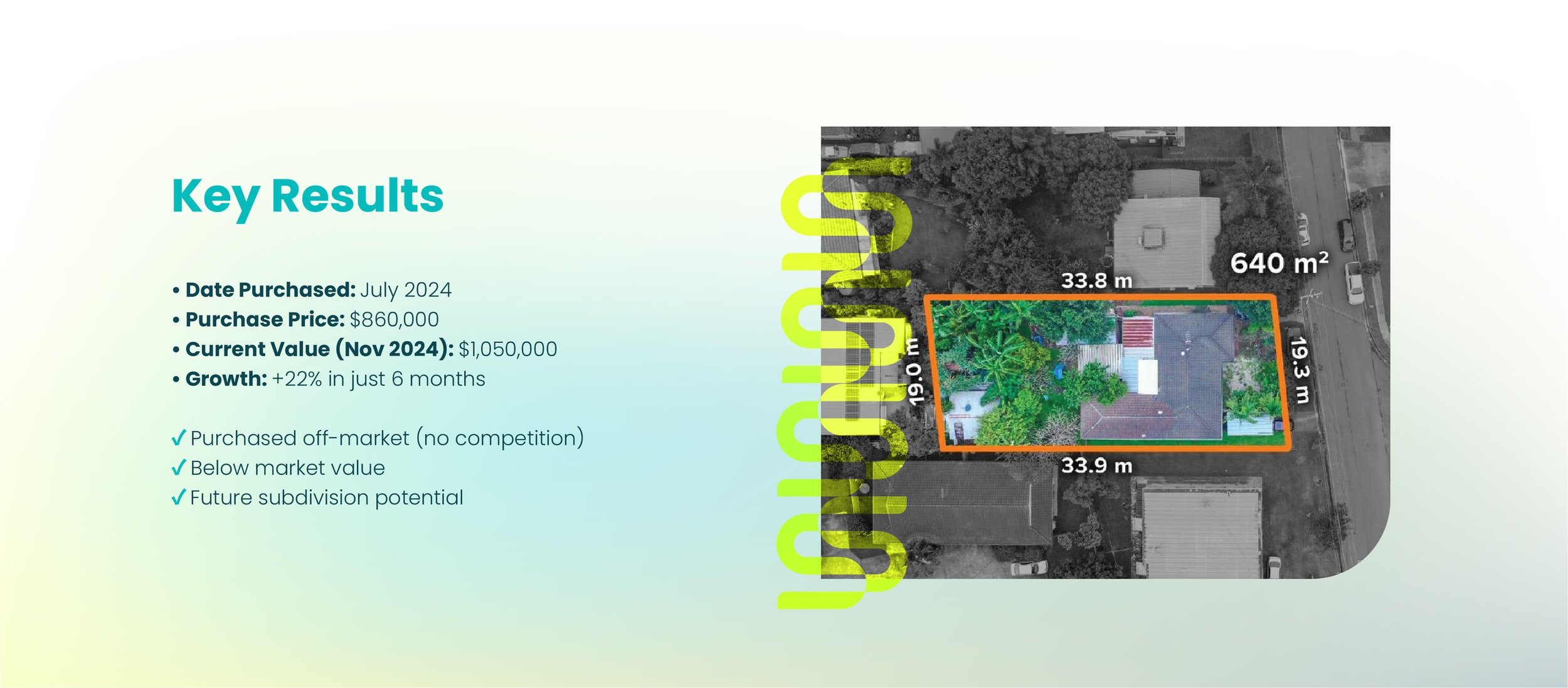 Thanks to our network of agents, we secured the property off-market, meaning no buyer competition and a smoother negotiation process. Even better, we purchased it well under market value at the time.